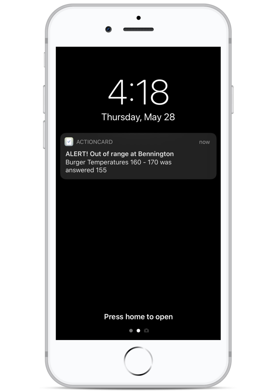 Notifications can be sent to alert key team members of incomplete work or critical temperatures that are out of range