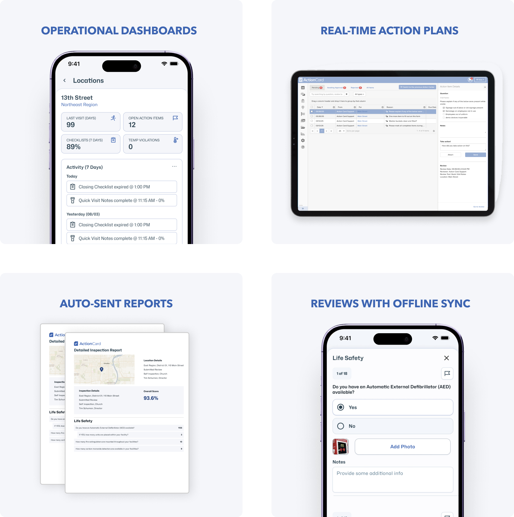 Health and wellness franchises, like medspas, wellness clinics, and boutique fitness studios, require flawless execution of safety protocols, facility cleanliness, and service delivery. But growing across multiple locations often leads to drift in standards and compliance, especially with diverse staff roles, personalized service menus and regulated treatment procedures. Whether it’s a treatment room in a medspa, a yoga studio opening checklist, or a daily sanitation protocol, operators need a system that ensures every client receives the same premium experience. ActionCard empowers both franchisors and franchisees by digitizing daily procedures, enabling mobile inspections, and providing real-time feedback on execution. The result is a system where brand standards aren’t just prescribed — they’re lived, measured, and continuously improved.